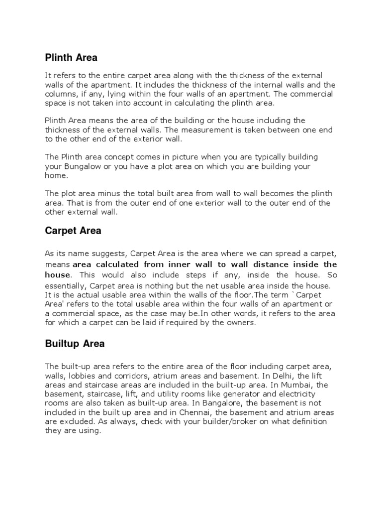 Plinth area is generally 10 20 more than carpet area.
