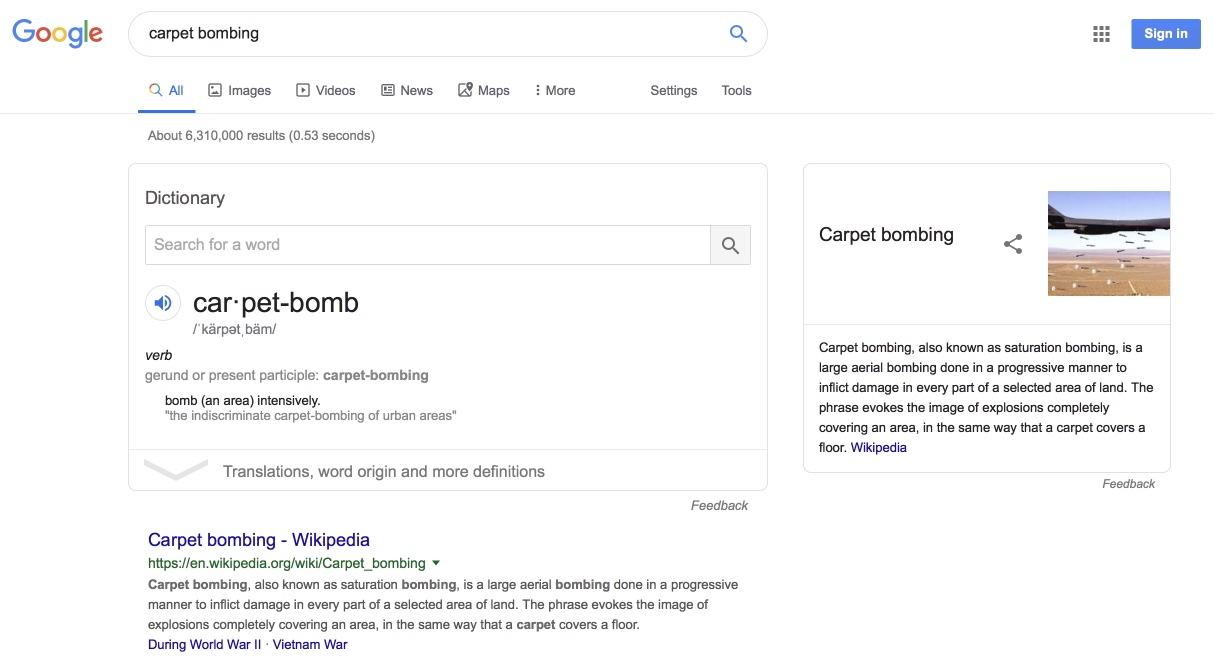 Decided to carpet bomb vietnam also see carpet bombs words similar to carpet bomb.